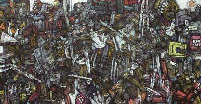 2007年我去北京看望吴冠中先生,他知道我是画抽象画的,就对我说:“绘画的最高阶段就是抽象画,上世纪80年代初我写了《论形式美》和《论抽象之美》讲的就是审美的规律,就是美的原则。任何好的绘画中都有抽象美,即使是写实的作品你也可以从里面分析他的点线面,他的构成和节奏,这些都是基本规律,不学习就画不好画。但是我没有画抽象画,因为中国大部分观众没有受过很好的审美教育,他们看不懂纯抽象的画,所以我画的东西都有一些大家熟悉的东西在上面。我画江南白墙上面爬满的藤蔓是抽象的线条,但是你看得出那是藤蔓;我画狮子林的太湖石是抽象的线条,但是你看得出那是太湖石。这就是‘风筝不断线’,就是说艺术的风筝飞得再高,生活这根线要牢牢地抓在手里,不能放。”