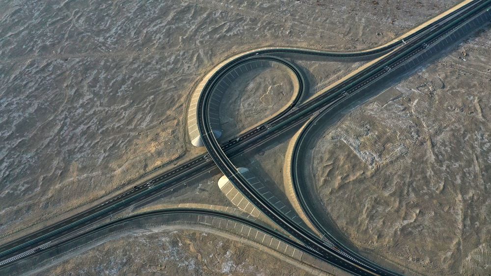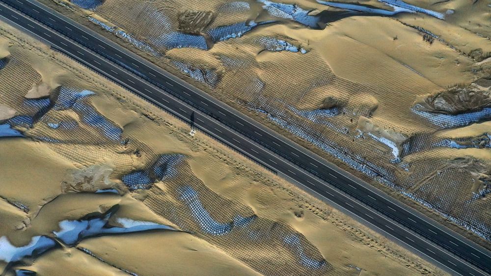 2021年12月29日,新疆巴音郭勒,尉犁至若羌高速。