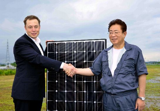 2011年7月,马斯克向时任相马市长立谷秀清赠送太阳能电池板。