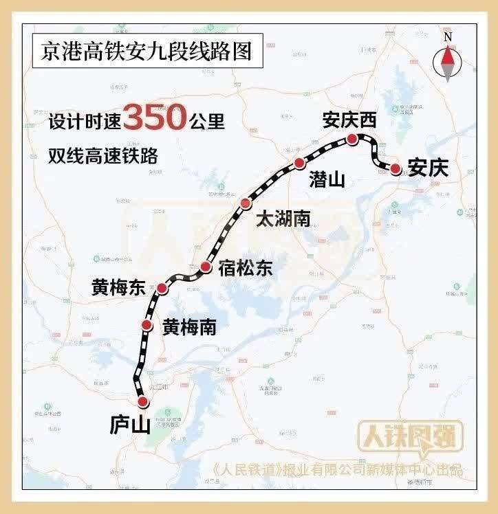 京港高铁安九段自安庆西站引出,经安徽省安庆市怀宁县、潜山市、太湖县、宿松县,湖北省黄冈市黄梅县,终至江西省九江市庐山站,线路全长176公里,设计时速350公里,全线共设安庆西、潜山、太湖南、宿松东、黄梅东、黄梅南、庐山7座车站,其中庐山站为既有车站。
