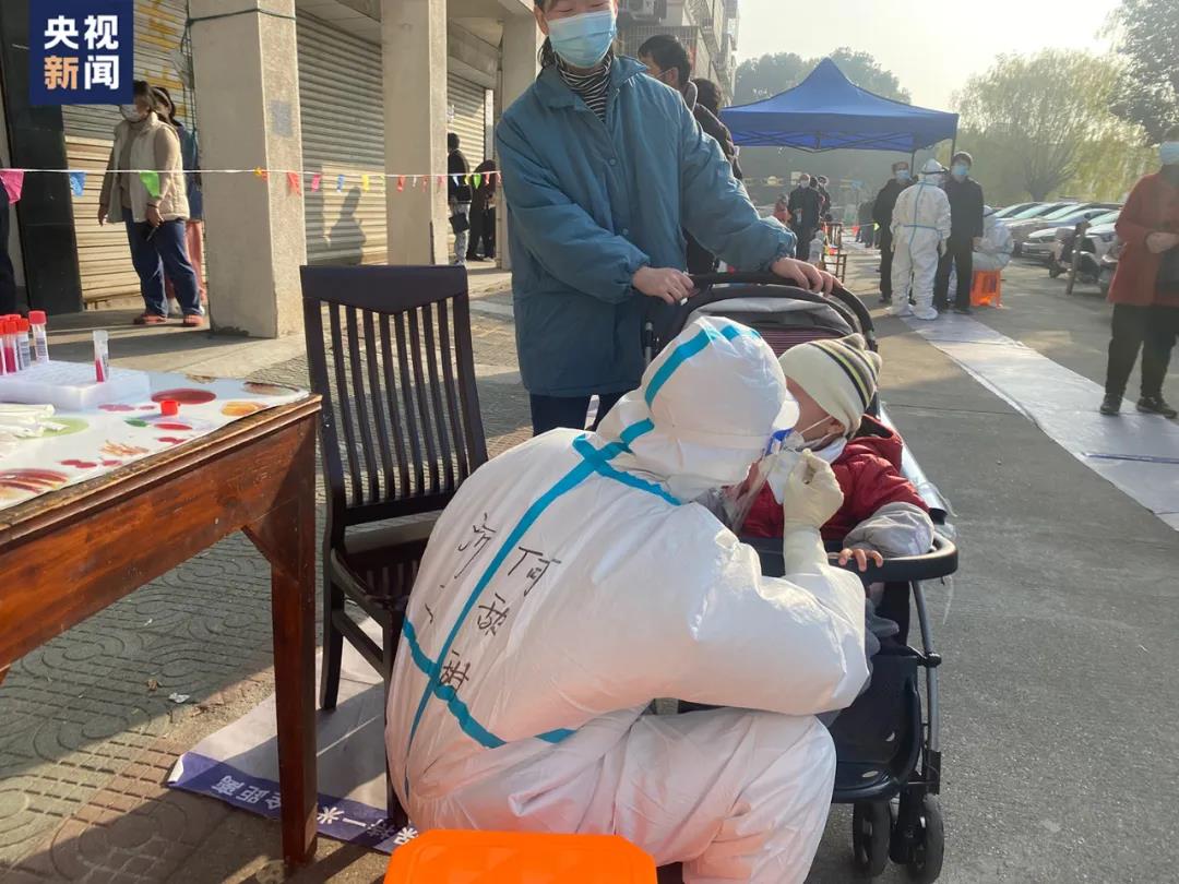 2021年12月19日,浙江上虞,何甜甜上门为居民采集核酸。