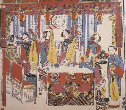 苏州桃花坞年画《小广寒弹唱图》真实再现“小广寒”书场七位女艺人演唱弹词的场面