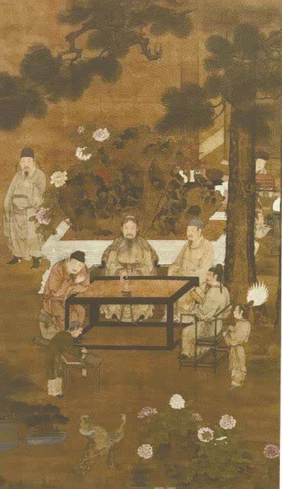 传周文矩《合乐图》描绘宫廷演奏,图为局部