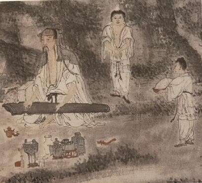 明代文徵明《琴士图卷》以琴音与翰墨、品茶结合,图为局部
