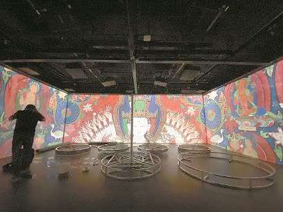 多媒体影像将一整面墙变成壁画,让观众瞬间“穿越”至数百年前西藏日喀则地区的庙宇。