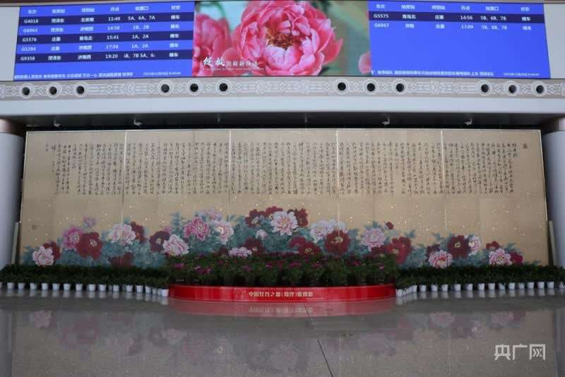 菏泽东站站房内的牡丹元素(央广网记者 唐磊 摄)