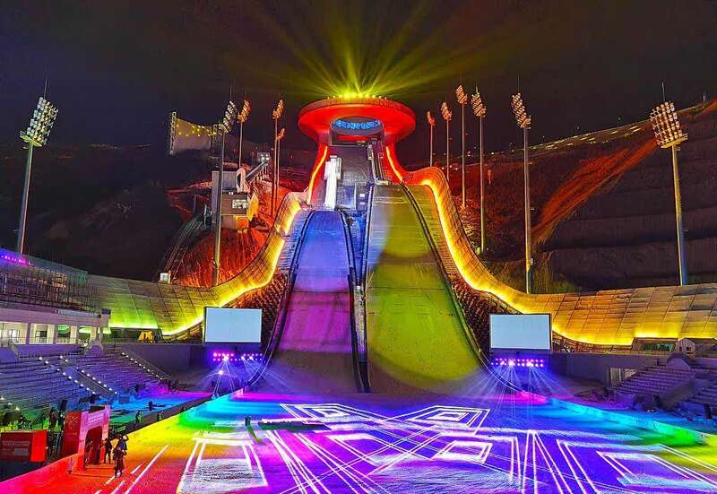 国家跳台滑雪中心“雪如意”灯光秀。