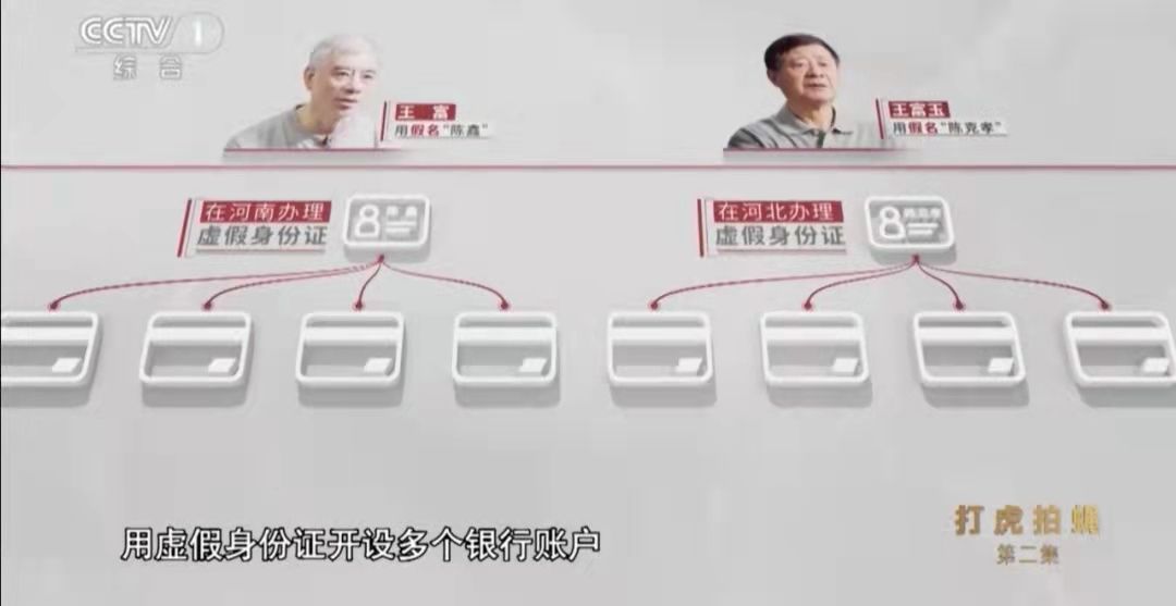 王富玉弟弟王富也出镜介绍:“在我的账户下面,每次给了我以后,我就拿过去,存放起来。”王富玉又安排王富用假名“陈鑫”在河南办理了虚假身份证,自己则用假名“陈克孝”在河北办理了虚假身份证,用虚假身份证开设多个银行账户,累计存入上亿元钱款。王富玉说:“在琼山拿人家钱,买了房子,又进了(海南)省委常委了,就没有敬畏了,拿纪律、拿法律不当回事儿,这就是我出问题的根本原因。”