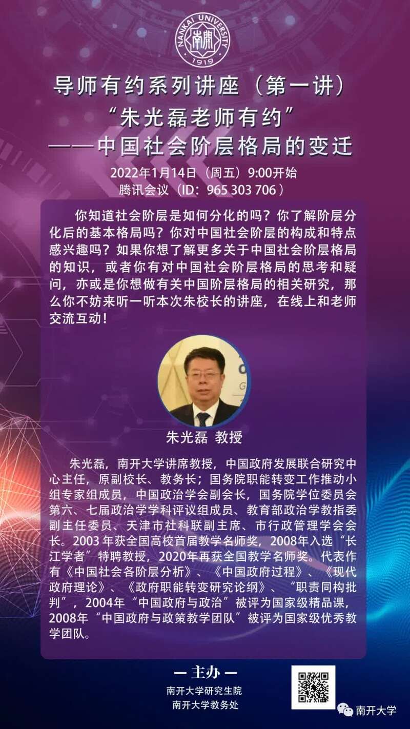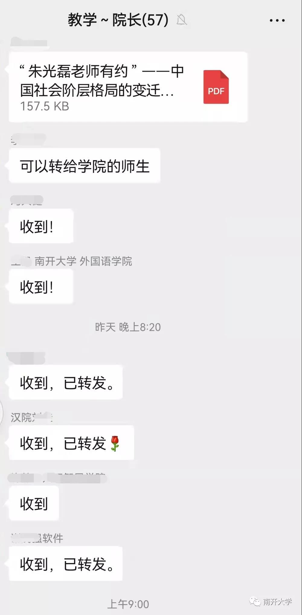 今天上午9:00,南开大学讲席教授、原副校长