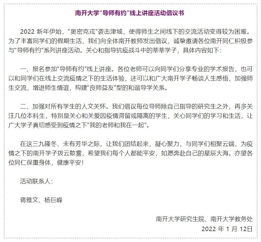 南开大学研究生院、教务处联合发出倡议