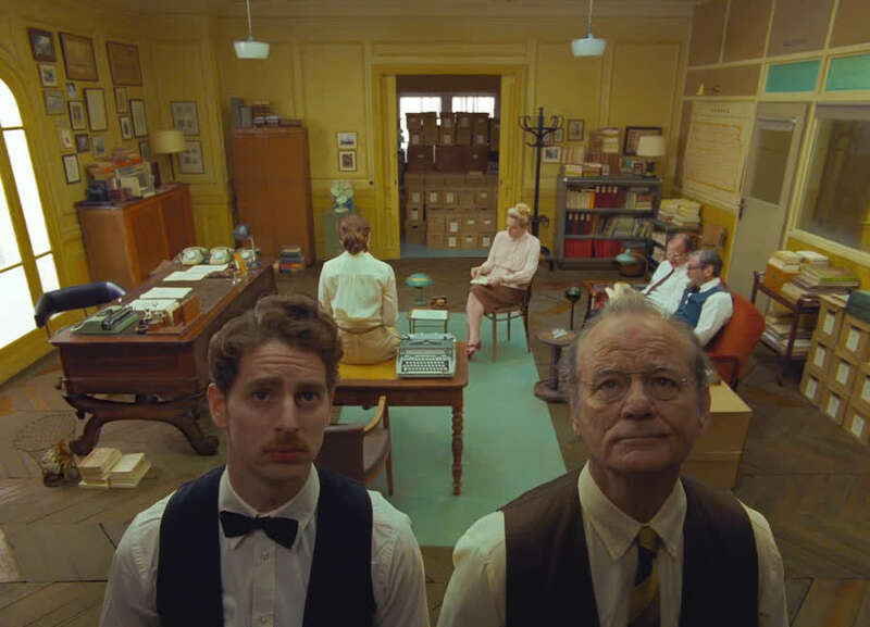 关于这部电影,或者他们说的,这些“东西”,这些“层”,这些漫画书般的运动和人物,这些琳琅满目的装饰,引发了一定程度的误解,但安德森的视听机制在这里发挥到了极致,也就意味着它看上去仅仅可能是某种似乎只有简单表面的形象:镜头设计、对称、平移轨道、舞台化、明星阵容;法国、巴黎、“五月风暴”;《纽约客》、詹姆斯·鲍德温、故事集、阅读、现代艺术、后现代艺术、中产阶级、虚无、童话、复古、致敬、美食等等,还有很多东西,但这只是第一层。在影片的各种海报上,我们总是能看到一大群人;事实上,在整部电影中,我们也总是看到各种人物挤满整个画面,但在这种拥挤的背后,安德森做的正是一种复杂的叠加,甚至挑起某种有意间离观众的障碍,最主要形式并不仅仅是展示,而是一种“包裹”,万物像一块可颂面包的面皮一样被卷起来,隐藏起中间的核心——如果有的话。