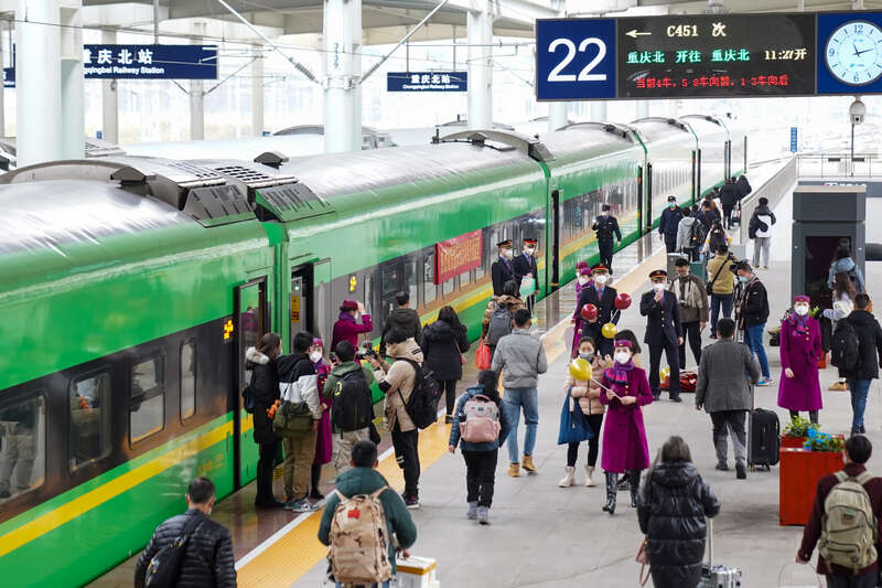 中国青年报客户端讯(包亮 李文航 中青报·中青网记者 王鑫昕)1月21日上午11时27分,随着重庆北经合川、武胜、南充北、南部、广安南、高兴,最终到达重庆北的C451次列车驶出,重庆与四川东部地区的首条省际环线动车正式开行,为成渝地区双城经济圈再添一条交通动脉。
