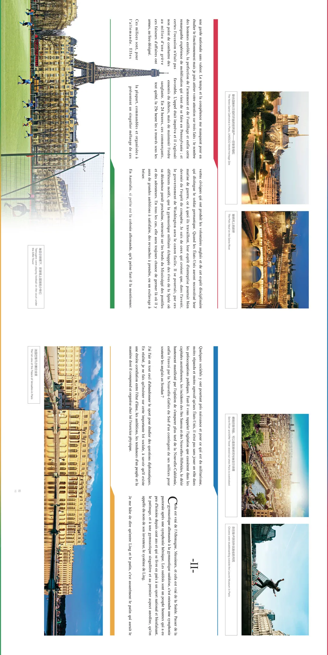 长卷Ⅲ以《奥林匹克宣言》的法文、英文、中文印刷体和中国书法体及“天人地”三层设计为基础结构,左右两翼分别以展示法国巴黎和希腊雅典暨两国与两城奥林匹克运动的历史与文化作为起点,追溯古代奥林匹克文化的源头和现代奥林匹克复兴的开端。长卷的中心“奥林匹克宣言广场”取意中国传统文化中“天圆地方”的理念,外形呈现五环同心圆与外围的北半幅三段弧形铜质纪念碑构成法、中、英三种文字《奥林匹克宣言》碑体,中文《奥林匹克宣言》的弧形碑体居中,上立主碑。主碑正背面刻有奥林匹克之父顾拜旦和时任国际奥委会主席罗格的浮雕像。