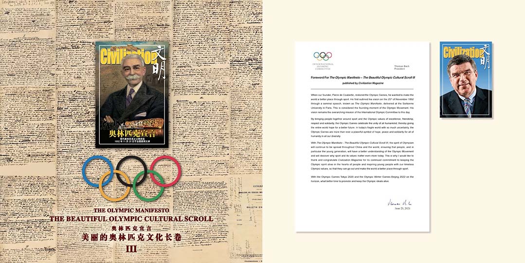 近20年来,首都文明工程基金会与《文明》杂志一直以携手国际奥委会推出国际第一套“奥林匹克文化读本”、建成世界第一个“奥林匹克宣言广场”和连接世界的纽带《奥林匹克文化长卷》为载体,把促进奥林匹克文化的传承发展与互动传播作为东西方文化交流融合的一个平台和纽带。《奥林匹克文化长卷Ⅲ》是继2012年推出的《奥林匹克文化长卷Ⅰ》和2016年推出《奥林匹克文化长卷Ⅱ》之后历时十年推出的第三部文化长卷。《奥林匹克文化长卷》系列已经成为由国际奥委会指导,奥林匹克大家庭共同参与,在中国形成并贡献给世界的奥林匹克文化传播互动的平台与载体。