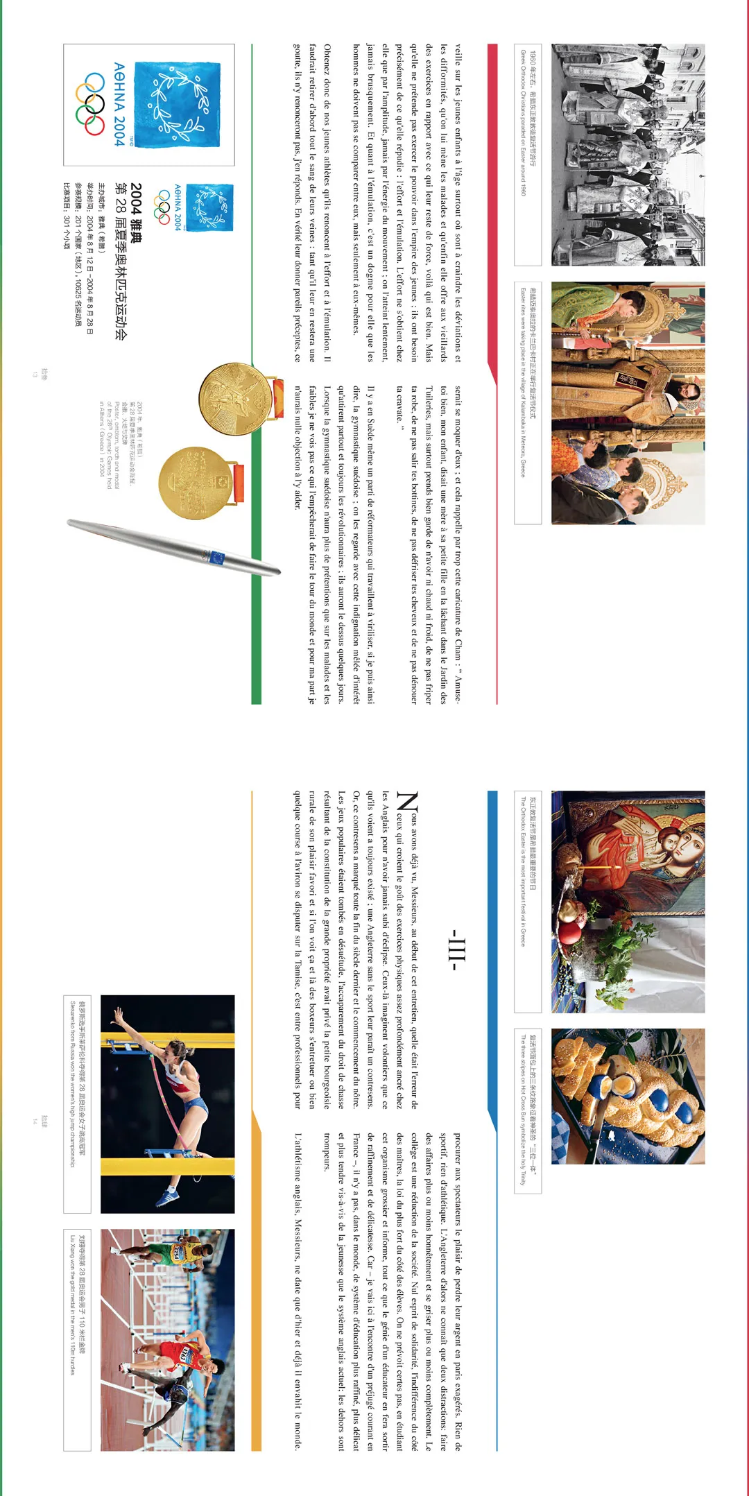 长卷Ⅲ的主体内容以举办过夏季和冬季奥运会的23个国家和43个城市的节日为线索,展示了全世界五大洲的不同民族各具特色的节日文化。既有历史悠久的可以追溯到古凯尔特人的瑞典五朔节,也有时尚现代、备受人们喜爱的美国国家冰淇淋日;既有享誉世界、精彩绝伦的威尼斯狂欢节,也有鲜为人知、意义非凡的德国“鸟儿婚礼”;既有传递和平之声的老桥跳水节,也有往事不能承受之重的墨西哥瓜达卢佩圣母节。