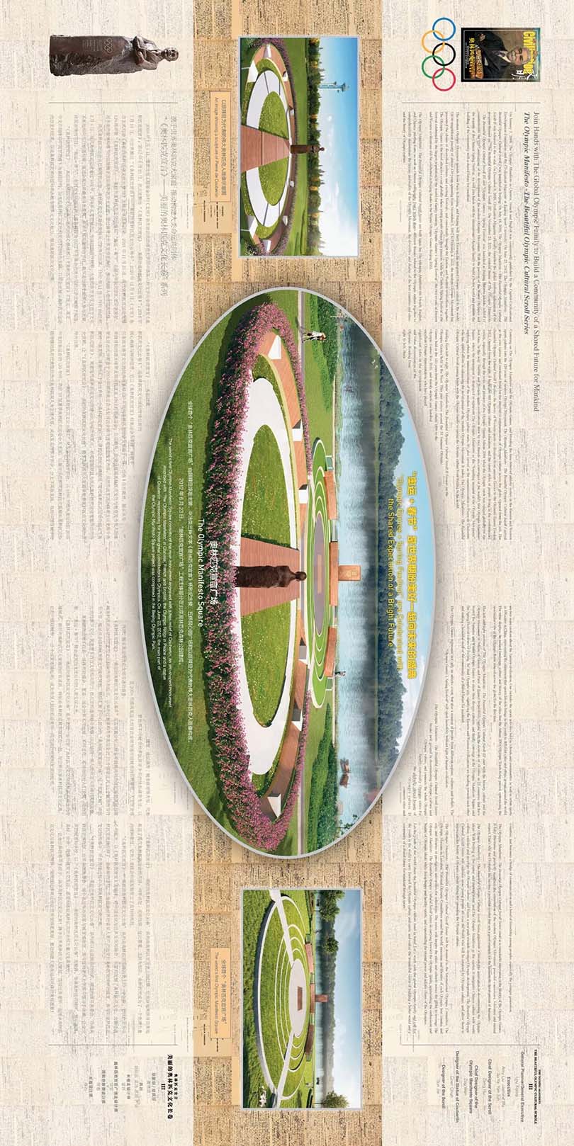 2012年全球首个“奥林匹克宣言广场”在北京落成,同时《文明》杂志向全球推出奥林匹克历史上第一部《奥林匹克文化长卷》。