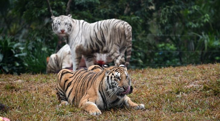 虎年看虎,为新春游园的市民游客带来新年好彩头,在长隆野生动物世界里,老虎家族有将近300只老虎,各个老虎展区均有特色互动方式让游客见识到老虎的威风。
