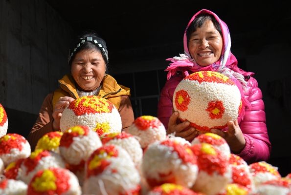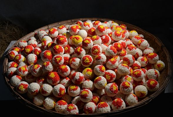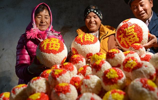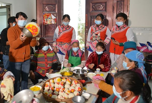 2022年1月25日,昆明市,春节将至,晋宁区晋城街道新街回龙村家家户户都在赶制口味香甜、寓意喜庆的传统米花团,充满乡土气息的传统制作让人感受到浓浓的年味。