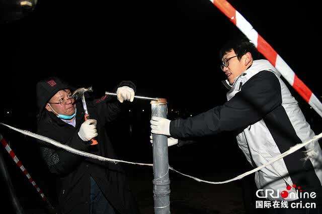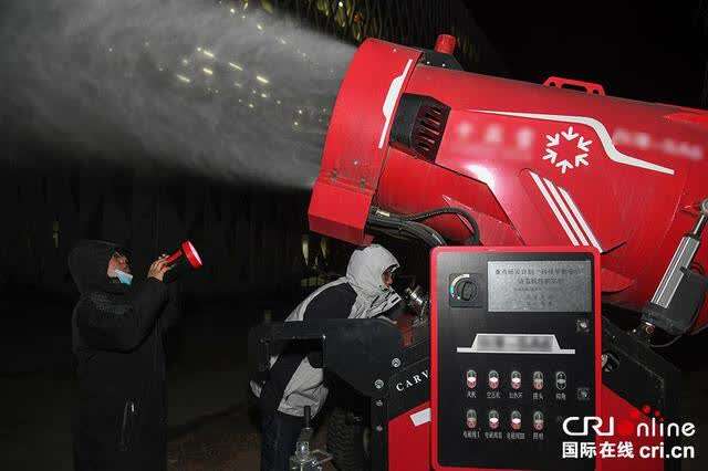 国际在线报道(记者 陈思阳):“水泵冻住了,拿热水把它浇开……”伴随着一声声指令,张博文(左二)和组员也开始了新一轮的造雪实验,虽然此时的气温已经到了零下8℃,但这丝毫没有影响到他们的实验热情。张博文说:“因为白天的气温比较高,所以有些实验只能安排在夜晚。”