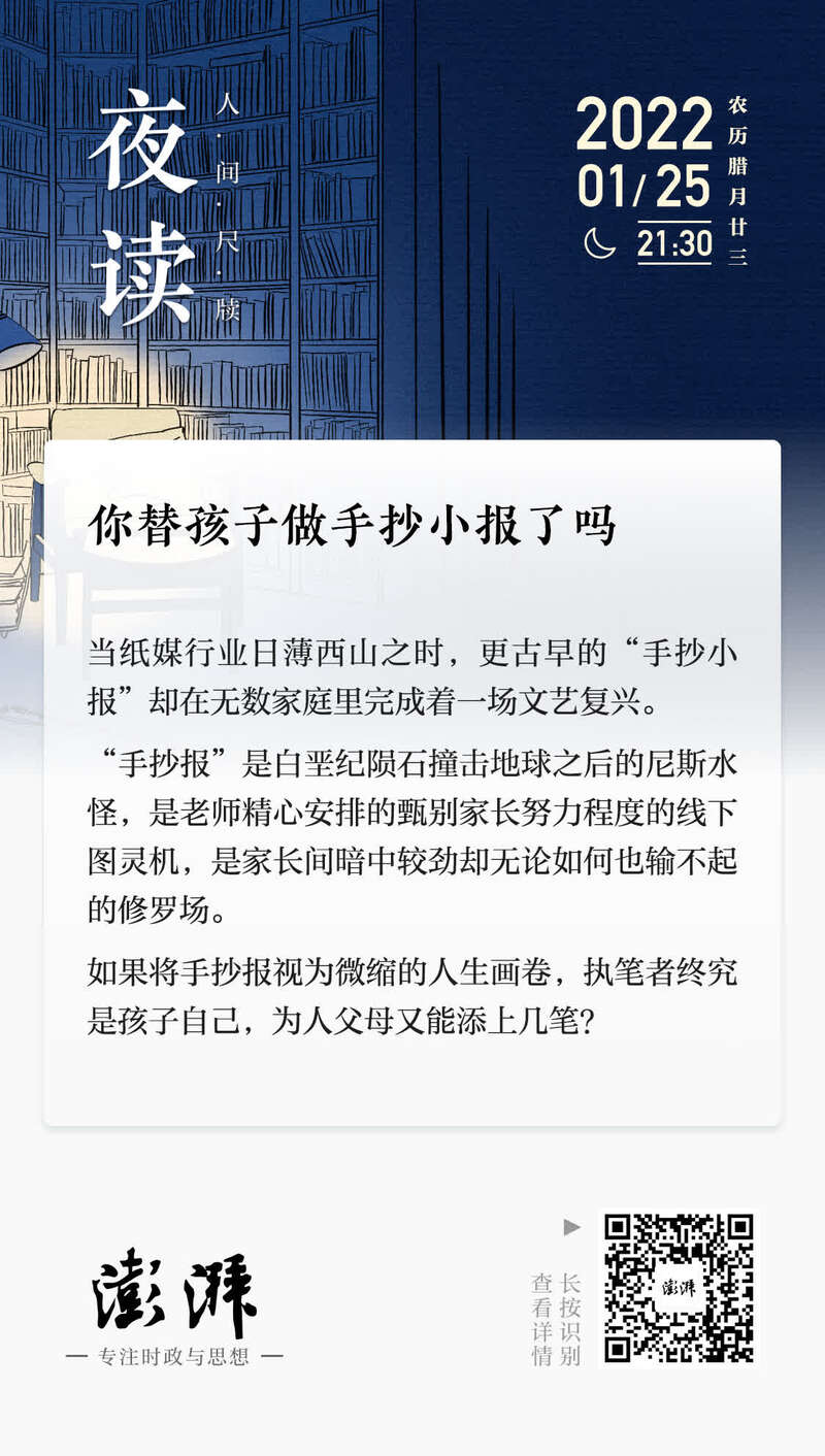 “手抄报”是白垩纪陨石撞击地球之后的尼斯水怪,是政俶燔典之后的鲁殿灵光,是老师精心安排的甄别家长努力程度的线下图灵机,是“别人家孩子”胸前熠熠生辉的小红花,是家长间暗中较劲却无论如何也输不起的修罗场。