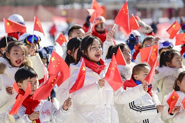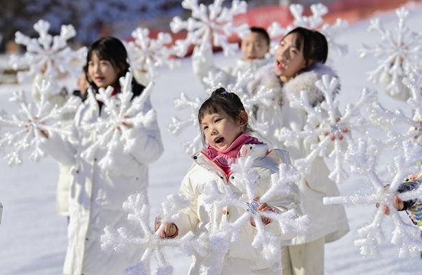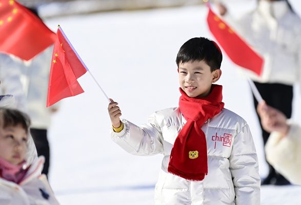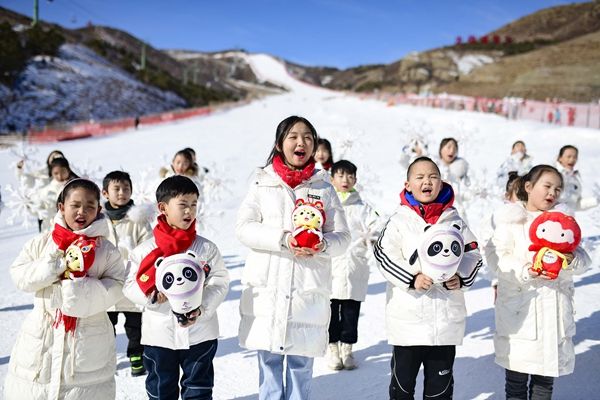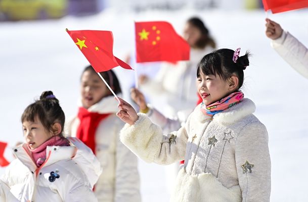 2022年1月26日,呼和浩特,内蒙古晨旭艺术专业培训学校在太伟滑雪场举行“放歌冰雪迎冬奥”主题快闪活动。