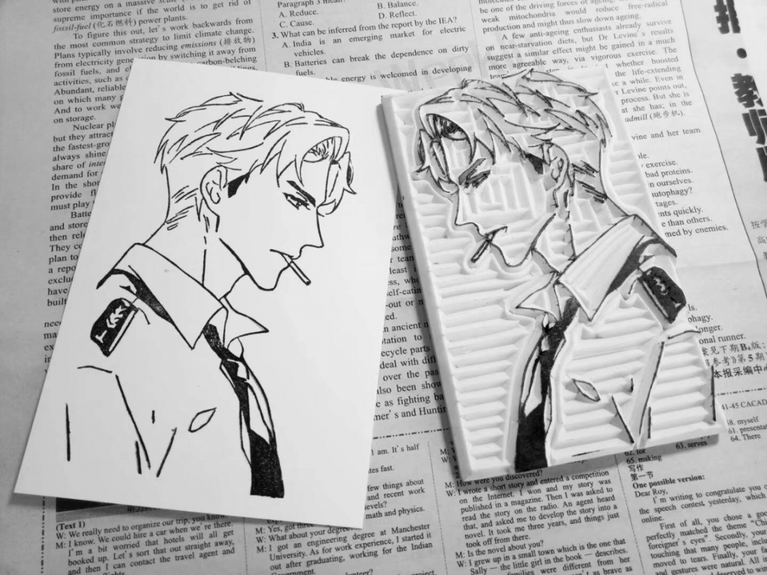 三年前,中考结束后的弓毅晨无意中在网上看到了别人制作的橡皮章,便被深深吸引了。“最开始的时候只能做一些简单的雕刻,慢慢接触多了就开始尝试人物等图案,图案越复杂纹路越小,很考验耐心。”弓毅晨说,学习橡皮章雕刻是兴趣使然,全靠自学成才。