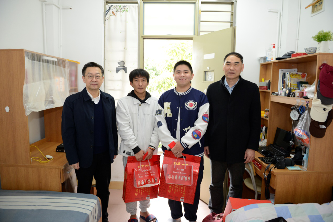 机电学院、建筑学院、计算机学院等各院系的老师们也纷纷来到留校学生宿舍,为大家送上新春的祝福与慰问。