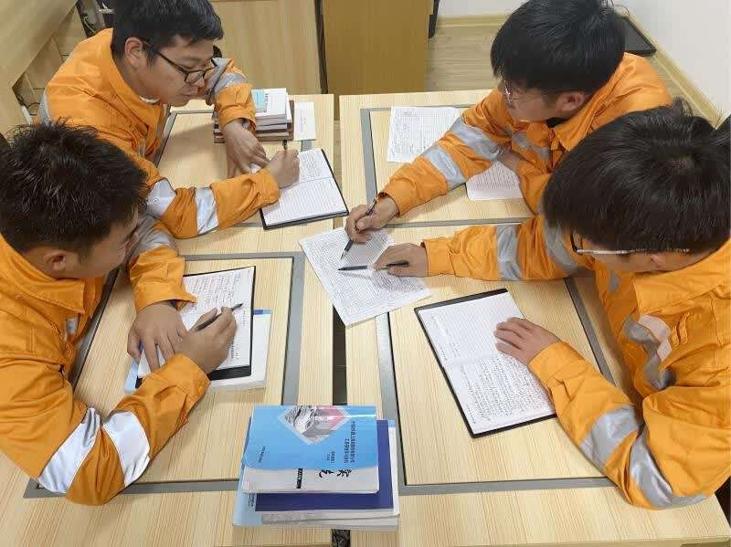 上午现场作业,下午总结分析,晚上理论学习。实训班每周组织一次上机考试、一次纸质考试。实训班把考试成绩在全班进行公布,并把考试成绩和绩效工资挂钩。