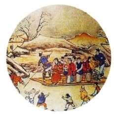 清代查揆撰写的《燕台口号一百首》中说:“河头冻合坐冰床,偷得舟行陆地方。更有抛球人夺彩,一双飞鸟欲生芒。”原注云:“冬月冰坚,以平板作床状,下用二足裹以铁,一人引绳,名‘冰床’,亦曰‘拖床’。又尝于冰上弄球掷彩为冰嬉。”