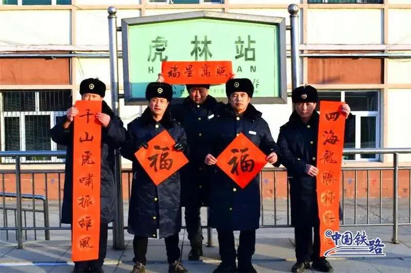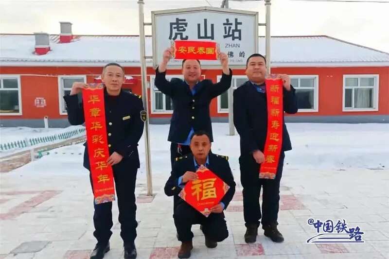 这里现有职工12名,每日接发列车、组织旅客乘降。由于地处偏远,职工们休息时会自己动手建设小家。他们准备了福字、对联和糖果,带着虎山站的“生龙活虎”,跟村里的百姓一起过个幸福年。
