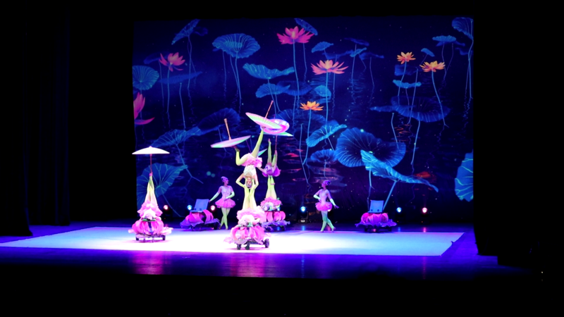 在此次杂技演出中,演出单位中国杂技团上演球技《雨中狂想》、车技《中国红》、摇摆高拐《攀登者》、集体蹬伞《荷塘月色》等节目,展现中国杂技艺术的新、美、奇、绝。