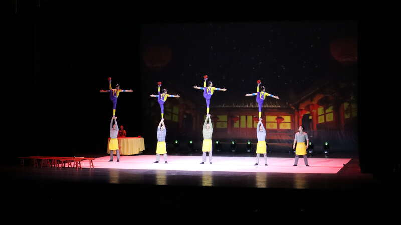 中国青年报客户端北京2月3日电(中青报·中青网记者 先藕洁)时而层层叠上,仅凭肢体力量搭起多层“人梯”,位于最顶端的演员轻巧地用脚尖“蹬伞”;时而倒立“一字马”,仅用一只手支撑便可弹奏出乐曲……冬奥会开幕式前夕,在北京保利剧院,由中国杂技团带来的《金牌杂技闹新春》杂技演出赢得观众阵阵掌声,梦幻舞台,曼妙舞姿,各种高难度杂技技巧结合舞台创意,给人独特的视觉盛宴。