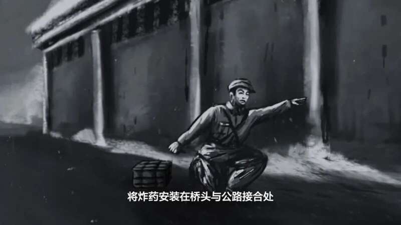 到达水门桥后。郭荣熙观察地形,凭借自己的爆破经验,选择将炸药安装在桥头与公路接合处。