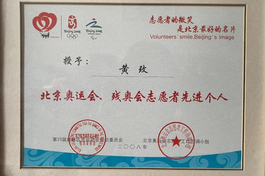 2008年奥运会结束后,我被“第29届奥林匹克运动会组织委员会”和“北京奥运会志愿者工作协调小组”评为“北京奥运会、残奥会志愿者先进个人”,同时获得中国翻译协会授予的“中国翻译事业优秀贡献奖”。这两个奖是我特别珍视的。因为它们让我感到,我可以用我的所学帮助他人、奉献社会,北外“服务国家战略”的目标不是一句空话,“外语专业大有可为”!作为外语教师,我们在教好专业知识和本领的同时,也要把奥运精神和志愿服务的传统传承下去。