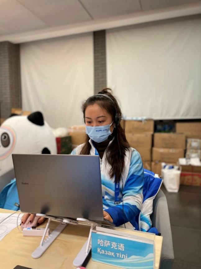 我叫刘卓,是北京外国语大学俄语学院一名研究生,现在是北京冬奥会一名语言服务志愿者,在北京多语言呼叫中心时刻准备通过电话提供哈萨克语翻译服务。
