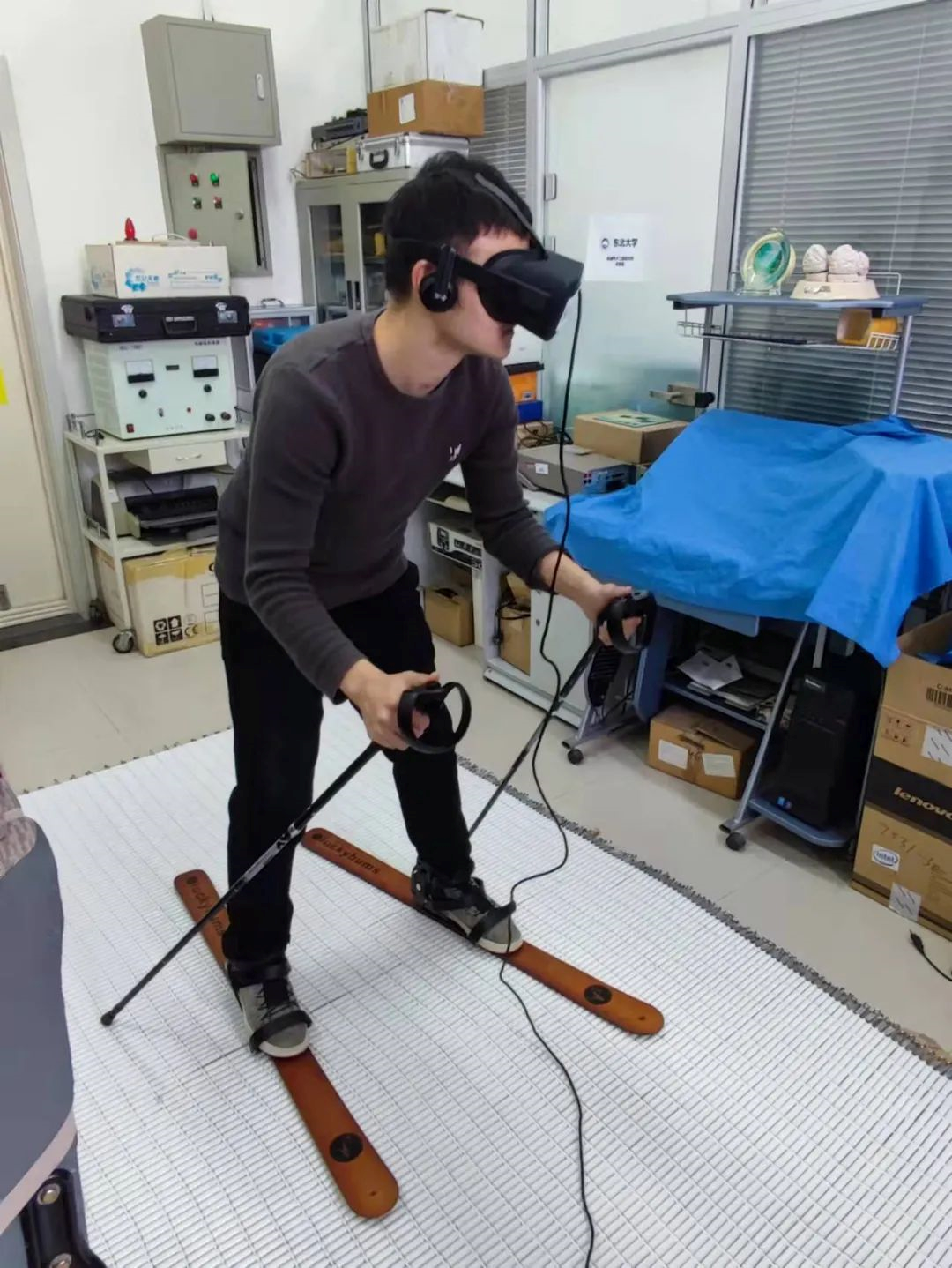 “如果说,这款机器人是情报员,那么,我们设计的虚拟与现实动态链接VR滑雪体验系统就是指挥中枢。”王宏介绍说,VR滑雪系统与普通的虚拟现实系统不同,它与滑雪道多模态环境要素测量机器人动态链接,在5G通信技术的支持下,通过“云端”将机器人测得的雪道数据实时传输给远方的VR系统,使得运动员或体验者戴上VR眼镜,足不出户在室内滑雪毯上就能进行模拟室外滑雪体验。室外训练不便时,通过改变系统的参数,就能帮助运动员达到在不同环境下训练的目的。