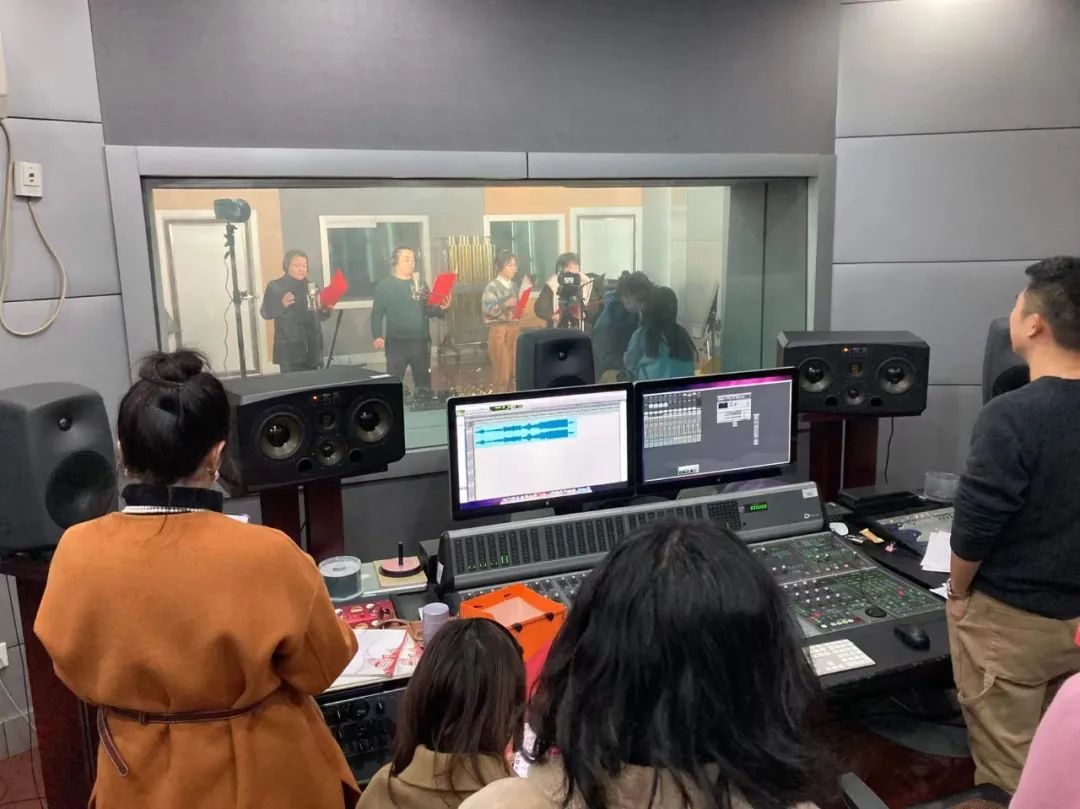 音乐学院院长郭克俭教授参加完下午的线上学术会议之后,便急匆匆赶到音乐学院一楼的录音棚,加入《灯火里的中国》录制。因为时间紧张,前期合练的时间不多,大家于是在录音室面对面反复练习,酝酿情绪。“再来一遍”“洪亮,我们再来一遍”,一遍又一遍,郭院长不厌其烦地带领老师们精心打磨,以精益求精的专业态度力求完美呈现。