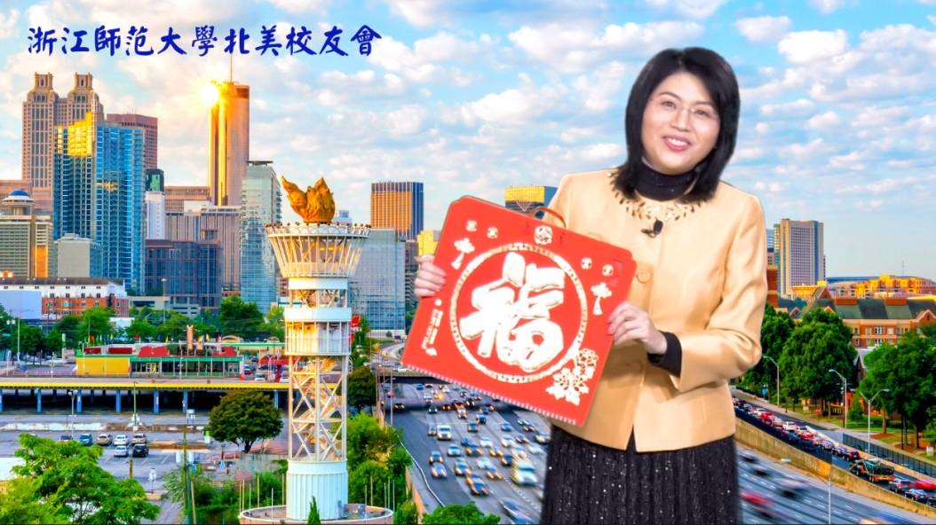 因为疫情原因,在亚特兰大有两年没有回国的校友金瑾接到邀请后,在繁忙的工作之余欣然应允。当天晚上她就熬夜录制了一遍,借助第二天受邀为华人社区录制新春祝福的契机,还专门请当地电视台帮忙重新录制了视频。