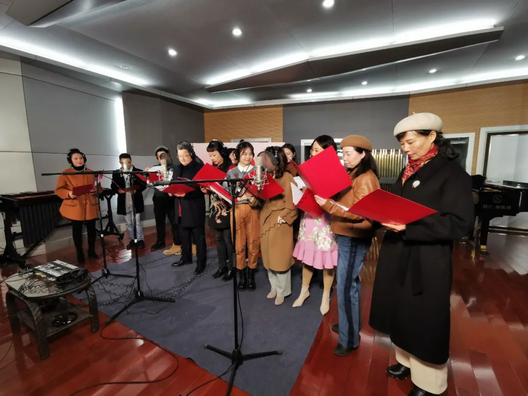夜幕悄然降临,直到晚上7点多,浙师大教工合唱团和音乐学院教师全身心投入到录制中,动听的钢琴声温暖了寒假中的音乐楼。随着时间的推进,有人悄悄跟儿子打电话道歉,没法准时带儿子去看电影,请求下次弥补;有人悄悄给家人打电话,晚饭不能回家吃了……录制顺利完成之后,窗外已是万家灯火,大家踏歌而归,音乐声依旧久久萦绕