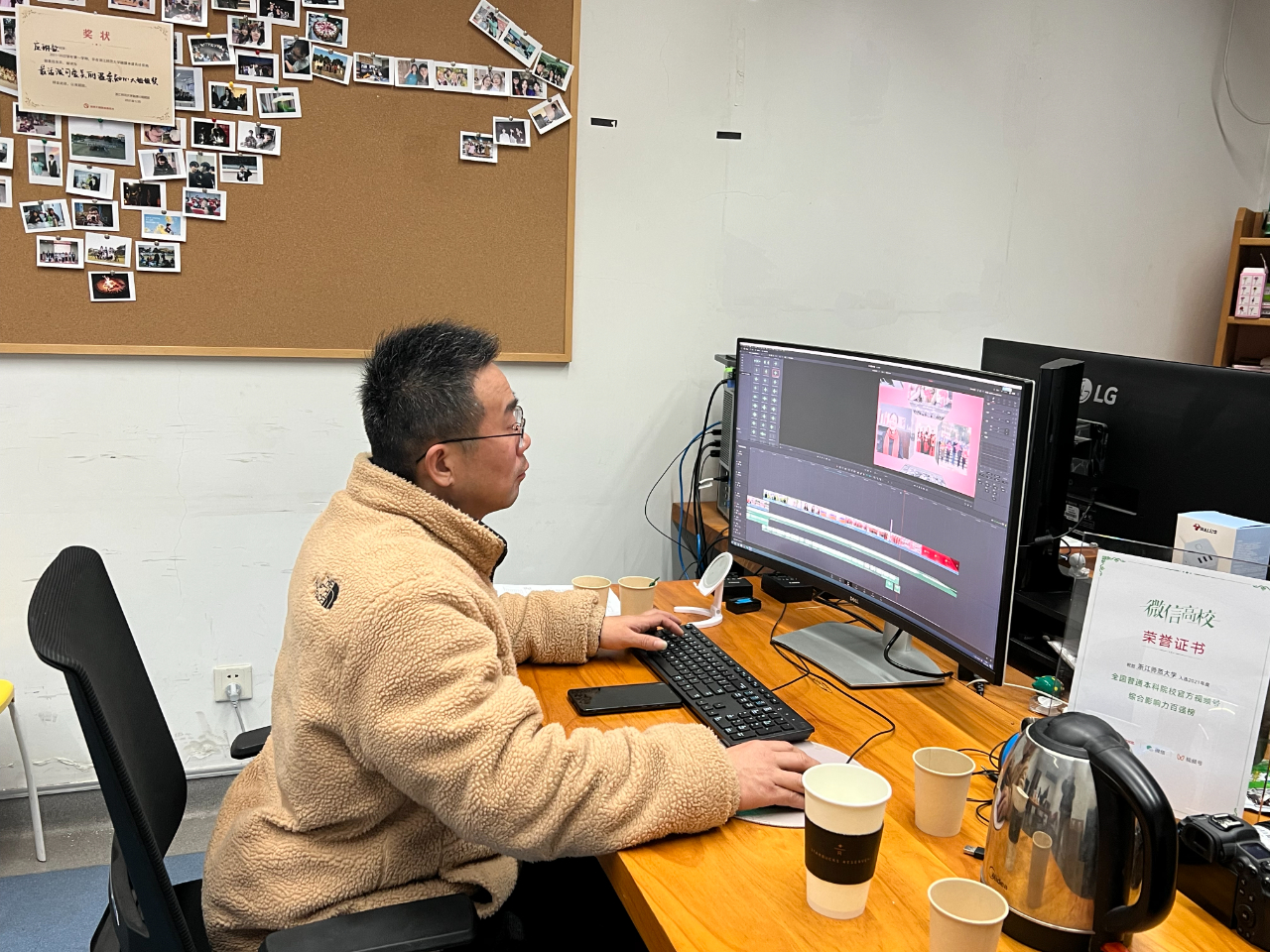 校友王旭赟推迟回宁波老家过年的时间,专程来到学校一起参与后期视频剪辑,连续两天直到深夜才回家。