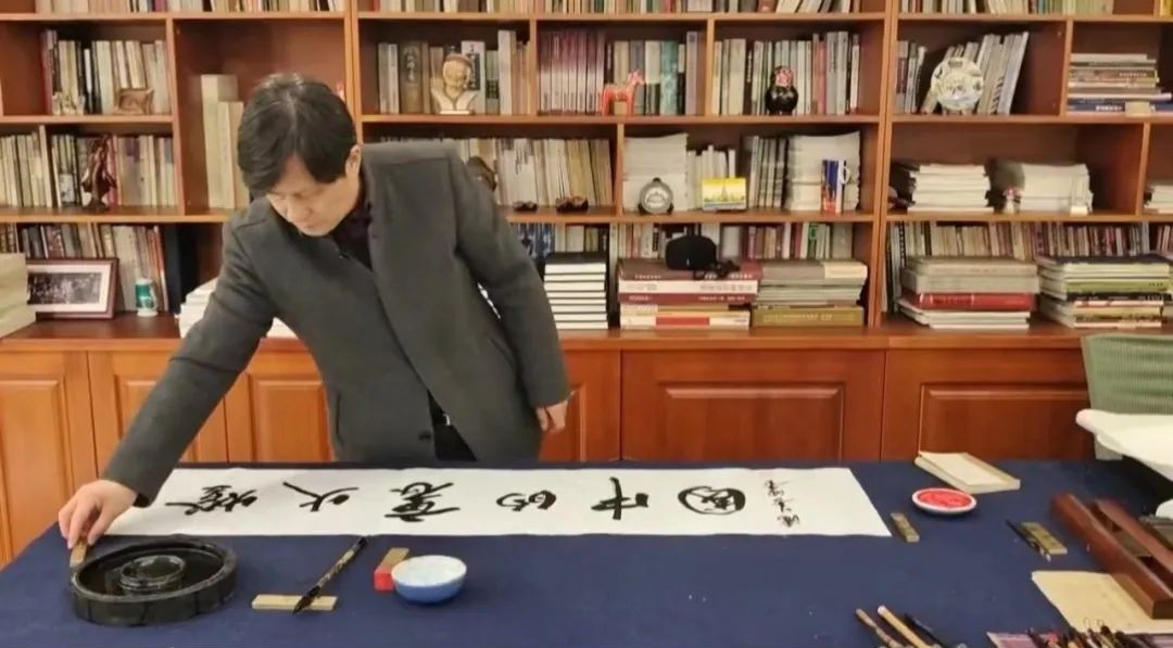 中国书法家协会副主席、校友潘善助亲自题写歌曲名《灯火里的中国》,挥毫泼墨,用苍劲有力的笔法祝福伟大祖国。