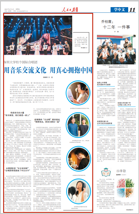 2016年秋,申文燮在学校的支持下创办了深圳大学国际合唱团。“与来自世界各地的成员一起聊音乐、一起唱歌、一起录制作品是我最开心的事。在音乐面前,不管是什么国籍、什么信仰,我们都是一家人。” 申文燮说。