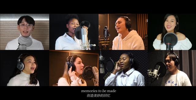“大家对合唱的印象是成员们按照女高、女中、男高、男低的声部排好,前面有个指挥,旁边有钢琴伴奏。但因为疫情,我们在不同的地方,没办法按照传统的合唱团形式去呈现。团长把谱子分给大家,我们在不同的国家录制自己需要演唱的部分,想象不出整首歌和了这么多人的声音之后的感觉。”谢丝燕回忆说,“所以当团长把完整作品发出来时,我有一种莫名的感动。”