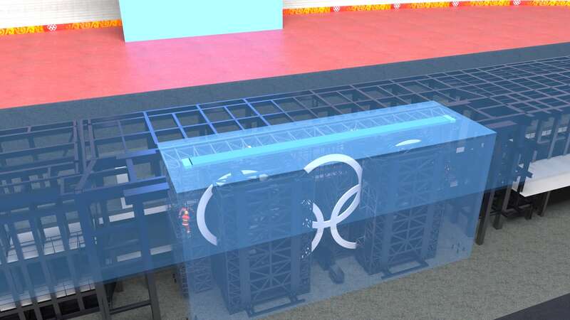 “巨大的舞台之下,是重约5000吨、近6层楼高钢结构焊成的钢铁骨骼,它在观众看不到的地下耸立支撑。”地面舞台保障负责人赵劲彪说:“如此规模的钢结构舞台要足够稳定,需要一组横梁像手臂一样在侧面‘扶’住,但鸟巢建筑结构特殊,不允许搭建横梁。”
