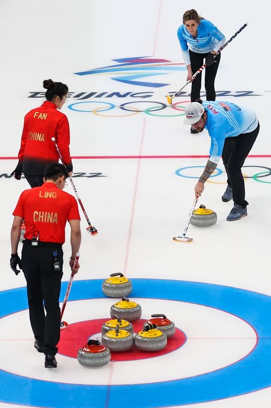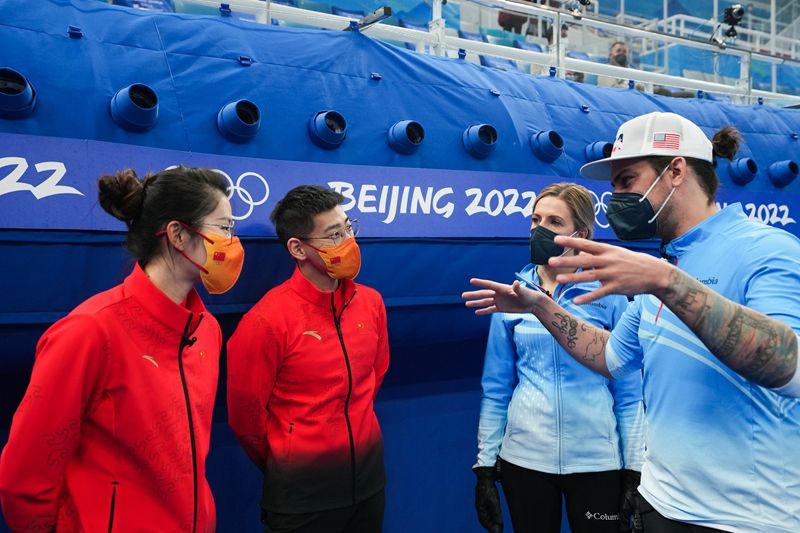 2月5日,北京冬奥会冰壶混双循环赛,之前已经连败两场的中国队急需一场胜利,但是,作为东道主,中国组合始终将体育精神放在非常重要的位置,因此在美国组合来到场地后,一边进行准备活动,一边进行友好的交流。