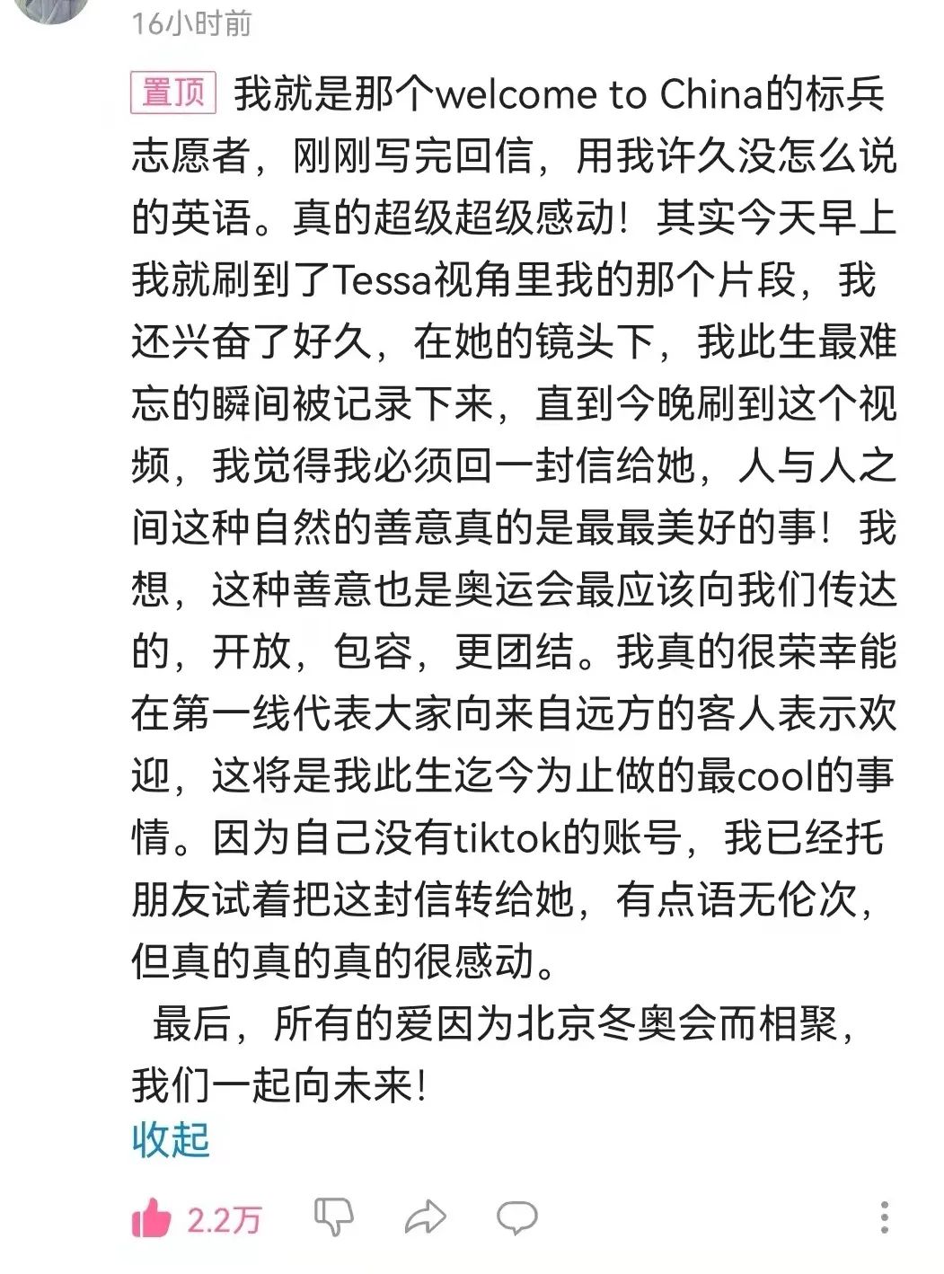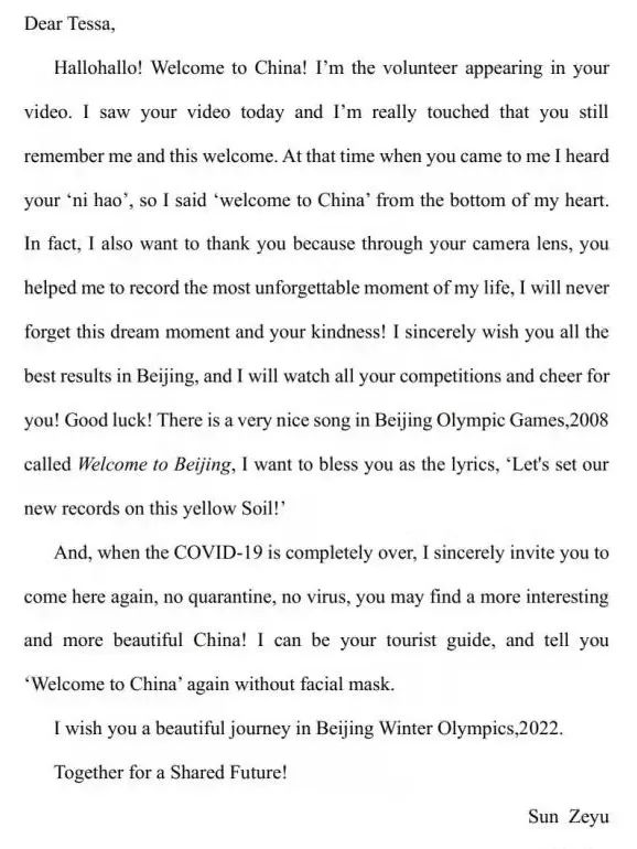 最后,他邀请泰莎待疫情结束,再来中国看看
