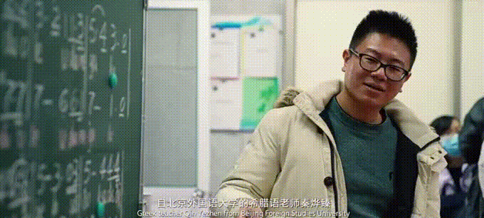 北外希腊语专业教师秦烨臻一直想为冬奥会尽一份自己的力量,当得知需要希腊语老师教授奥林匹克会歌的时候,便积极响应。他带着北外希腊语专业2019级本科生林嘉濠专程去往阜平,面对面地教授孩子们,让他们在短时间内能够掌握希腊语的发音。