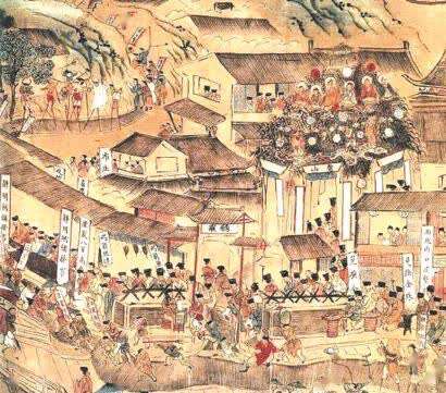明代《南都繁会景物图》局部,描绘了南京元宵灯会的盛景