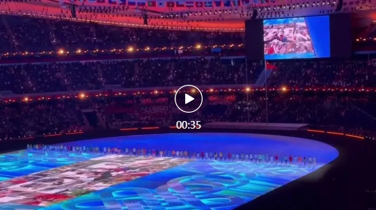 伴随《让世界充满爱》悠扬的旋律,263张世界人民抗疫、运动、笑脸的照片铺就开来,两侧的中国结也逐渐化为本次冬奥会主题口号“一起向未来”。舞台中央,世界青年们怀着最饱满的激情,徐徐迈出整齐、坚定、自信的步伐,向五湖四海展现“冰新一代”朝气蓬勃、积极向上的青年风采。