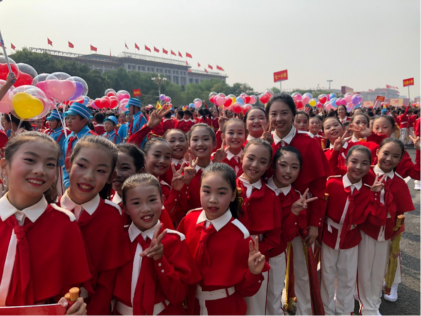 田晴参与指导国庆70周年群众游行行进式表演方阵“同心追梦”压轴节目,附小舞蹈团参演